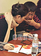 全國政協委員、著名影星鞏俐和姜文,周日參加政協文藝組討論會間隙研究新影片。中新社記者 劉可耕 攝