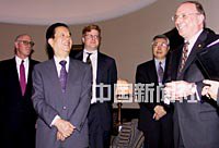 美東時間19日中午,國務院副總理錢其琛會見美國工商金融界人士時說,次日,他將與美國主流媒體負責人共進早餐。公司老板們對錢其琛開玩笑說:“那他們肯定會提很多問題難為你的。”賓主聽后大笑。中新社記者 陳建 攝