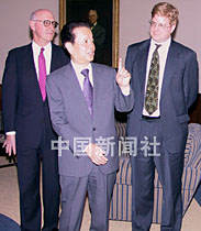 國務院副總理錢其琛在紐約會見美國工商企業家代表時表示,將于本月二十一日訪問華盛頓,并在那里會晤美國總統布什、國務卿鮑威爾等政要。他希望中美雙方共同努力,為雙邊經貿關系進一步發展創造更好環境。中新社圖 陳建 攝