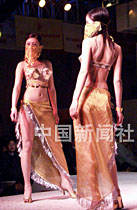 在上海舉行的第六屆“中國國際內衣、沙灘裝及輔料展覽會”,向人們演繹了內衣流行趨勢,圖為“黃金時代”主題。中新社記者 潘索菲 攝