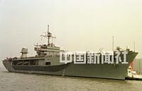 由美國第七艦隊司令梅茨格中將率領(lǐng)的美國海軍“藍嶺”號兩棲指揮艦,二十三日抵達上海訪問。圖為第七艦隊旗艦“藍嶺”號駛?cè)肷虾8哧柭反a頭。中新社圖 潘亞萍 攝