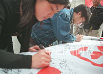 圖文:北大師生簽名支持北京申奧 2001年3月26日 06:36 ![]() 北京大學二十五日上午舉行萬人簽名活動,全力支持北京申辦2008年奧運會。中新社圖 鄭萍萍 攝 中新社北京三月二十五日電(高凱)向來以“心系天下,關心祖國榮辱”為精神傳統的北京大學師生,今天在自己的校園里舉行了“萬人簽名支持北京申奧活動”。 在燦爛的陽光下,師生們爭先恐后地涌到簽名臺前,在長達十幾米的申奧橫幅上寫下自己的名字。有不少人還在上面留下自己對北京申奧的祝福。 雖然此類簽名活動已有不少,但北大此次活動仍有特別意義。北大社團文體部部長胡九龍介紹:“現在,距離國際奧委會莫斯科投票的日子越來越近了,北大作為一所名校,希望能在此時為北京申奧出一把力! 一位剛簽完名從人群中擠出的女生告訴記者:“申奧對北京來說是件非常有益的事情,我作為北大的學生也感到高興,我希望自己能為申奧出一份力。我認為我們的申奧也要從細節著手! 一小時后,橫幅上已經有了很多簽名,組織者估計,今天至少會有兩千人參加這一活動。 按計劃,本周內這條滿載北大師生美好祝愿的申奧橫幅將被送交北京奧申委。 |
