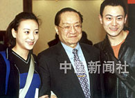 著名武俠文學(xué)大師金庸先生,二十六日在京與《笑傲江湖》劇組演員會(huì)面。中新社記者 錢興強(qiáng) 攝