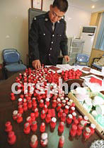 北京西誠警方二十一日夜“嚴打零點行動”中搗毀一個私刻公章窩點,當場收繳公章二百余枚。中新社記者 宋吉河 攝
