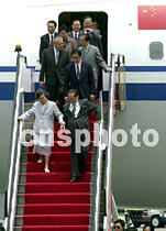 國家主席江澤民五月八日中午抵達香港國際機場。中新社傳真 任海霞攝