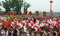 中新網西安6月5日消息:(記者呂振亞)今天上午,距離古城西安五十公里處的翠華山畔,響徹著陣陣激昂的歡呼聲:“申奧之旅一路順風,北京申奧一定成功”。二萬二千多名西安翻譯學院的學生在鳳凰衛視主持人許戈輝的帶領下,齊聲共祝北京好運。 今天是“北京——莫斯科申奧萬里行”車隊抵達西安后的第一天活動。上午,車隊應邀來到中國民辦高校的先鋒——西安翻譯學院,與師生一起作短暫的相聚。學生們在面對翠華山的廣場上,搭起了“同在一方熱土”的大舞臺,“五環之夢”、“為北京加油”等自編自導的節目,展現了學子們盼望奧運的熱情。 當車隊一踏進陜西,我們就感受了古城西安人民支持北京申奧的熱誠。昨天下午,由陜西日報組織的歡迎隊伍在黃河渡口大橋上為車隊獻花,晚上又舉行盛大晚宴招待遠行的將士。今天中午,西北電力公司與車隊聯歡,公司員工告訴我們,他們正在為“西電東送”緊張工作,力爭早日打通北部通道。我們獲知,“西電東送”計劃事關北京申奧,因為到時北京地區將不用再進行火力發電,可以大大減少污染,實現“綠色奧運”。 車隊回到賓館已是下午二時許,我們稍作“調整”,又慕名采訪一位世紀老人。他就是中國體育界仍健在的元老王耀東。 王老1919年和1921年曾參加遠東運動會的長跑和藍球比賽,1984年赴美國參觀第23屆奧運會,他是中國近百年體育發展史的參與者和見證人。他今年已一百零一歲,但仍十分健談。作為一名從舊中國“東亞病夫”的痛苦中走過來的運動健將,王老對北京申奧的意義有更為深切的理解。他拉著采訪記者的手反復說,“北京申辦奧運會,是中國強大的表現。我2008年爭取到北京看看咱們中國人自己辦的奧運會。”(完) |