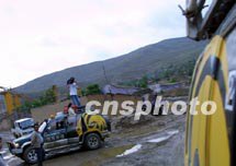 ![]() “西進路上逢甘露”,6月8日,萬里行車隊從西安赴蘭州,長途跋涉十五個小時,克服了雨天道路不平的困難,順利于當晚十一時抵達目的地。中新社圖 魏孝明 攝