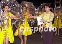 薈萃中國內地及港、澳、臺眾多著名歌星的“同一首歌──走進澳門”大型演唱會,將于十二日在澳門文化中心上演。圖為該演唱會總導演、中央電視臺MTV總制片人孟欣,在彩排時對擔任伴舞的澳門中學生進行演出指導。中新社記者 宗金柱 攝