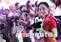 圖:中國申奧禮儀小姐引人注目 2001年07月11日 21:42 ![]() 7月11日,在莫斯科世貿中心北京申奧展臺前,身穿紅旗袍的禮儀小姐成為各國記者爭相拍攝的焦點。中新社記者 王瑤 攝