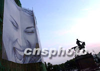 圖:莫斯科紅場廣告畫與銅像 2001年07月12日 15:06 ![]() 莫斯科紅場七月為迎接國際奧委會一一二次全會在此舉行,將正在修繕的古建筑加以遮擋,裝飾在上的巨大廣告頭像與騎馬元帥銅像形成有趣對照。中新社記者 賈國榮 攝