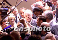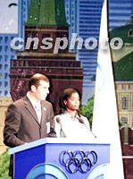 組圖:巴黎代表團進行申奧陳述 2001年07月13日 19:30 ![]() 7月13日,國際奧委會112次會議在莫斯科世界貿易中心舉行會議,表決2008年奧運會舉辦城市。圖為巴黎代表團齊達內第一個陳述。中新社記者 王瑤 攝 ![]() 圖為巴黎代表團陳述后退場時,法國總理若斯潘接受記者采訪。中新社記者 王瑤 攝