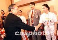 ![]() 國務院副總理李嵐清在中國駐俄使館接見北京申奧代表團。中新社記者 王瑤 攝