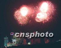 13日夜,北京放焰火慶祝申奧成功。中新社圖 鄭瑞德 攝