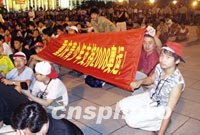 圖:各地人群在天安門廣場等待升旗儀式 2001年07月14日 11:10 ![]() 來自中國各地的年輕人經過一夜的狂歡之后,七月十四日清晨聚集在天安門廣場,等待國旗的升起。中新社圖 武仲林 攝