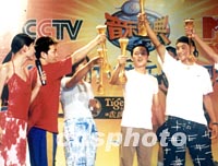 組圖:2001CCTV-MTV歌手匯聚京城歡慶申奧成功 2001年07月15日 18:54 ![]() 在北京申奧成功之際,2001CCTV-MTV音樂盛典,十五日在北京舉辦歡慶申奧成功,評選歌手現場投票活動。圖為年輕歌手身穿前衛時裝載歌載舞盡興表演。中新社記者 錢興強 攝 ![]() 為歡慶北京2008年申奧成功,CCTV-MTV音樂盛典十五日在北京舉行盛大歡慶活動。圖為眾歌手和歌迷舉杯共慶北京申奧成功。中新社記者 錢興強 攝