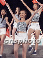 組圖:世界精英模特大賽在青島舉行 2001年08月10日 11:14 ![]() 戴安娜2001世界精英模特大賽中國預選賽暨金沙灘模特大賽十日在青島舉行,選自中國各地的六十名女模特參加了此次賽事。圖為選手穿活力裝展示。 中新社記者 錢興強 攝 ![]() 戴安娜2001世界精英模特大賽中國預選賽暨金沙灘模特大賽十日在青島舉行,選自中國各地的六十名女模特進行個人才藝展示。圖為一名選手的舞劍表演。中新社記者 錢興強 攝