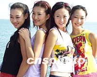 戴安娜2001世界精英模特大賽中國(guó)預(yù)選賽暨金沙灘模特大賽十二日在青島金沙灘進(jìn)行外外景拍攝。圖為青春亮麗的模特新秀。中新社記者 錢興強(qiáng) 攝