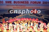 ![]() 包括中國在內的APEC成員體中小企業家約六百人參加二十七日在上海開幕的APEC中小企業工商論壇。圖為開幕式上的歌舞表演。中新社記者 潘索菲 攝
