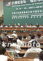 圖文:北京“21世紀論壇”呼吁共建人類綠色文明 2001年09月06日 22:14 ![]() 以“人類發展與環境問題”為主題的“21世紀論壇--綠色與環保2001年會議”六日在北京閉幕。中新社記者 滿會喬 攝 ![]() 北京市長劉淇六日在北京出席“21世紀論壇--綠色與環保2001會議”時表示,將在未來七年籌備和舉辦奧運會的過程中,把北京建設成為園林城市和生態城市。中新社記者 滿會喬 攝