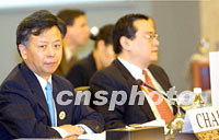 圖文:APEC財長齊聚蘇州 共論天下經濟形勢 2001年09月08日 18:01 ![]() 第八屆APEC財政及央行副手會六日上午在中國蘇州市舉行。來自APEC二十一個經濟體和三個國際經濟組織的代表就會議各項議程進行了討論。中新社記者 李剛 攝 ![]() 第八屆APEC財政及央行副手會六日在江蘇省蘇州市舉行,中國財政部副部長、本屆會議主席金立群主持會議。中新社記者 李剛 攝