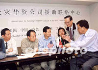 圖文:紐約成立"911受災(zāi)華資公司援助聯(lián)絡(luò)中心" 2001年09月21日 06:01 ![]() 美國中國商會和亞洲文化企業(yè)有限公司共同設(shè)立了"911受災(zāi)華資公司援助聯(lián)絡(luò)中心"。第2天,中國駐紐約總領(lǐng)館的商務(wù)官員來到中心看望義務(wù)工作者。圖為姚定康向領(lǐng)館官員和媒體介紹聯(lián)絡(luò)受難者的情況。中新社圖 龔文謨 攝