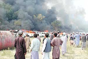 圖文:阿富汗反美大示威中有12名警察受傷 2001年09月27日 11:10 ![]() 示威者圍觀美國大使館內(nèi)狂燒的車子。路透社 圖 中新網(wǎng)香港9月27日消息:幾千名阿富汗示威者昨天闖入美國駐阿富汗大使館,放火焚燒遭丟棄的汽車,火勢波及大使館的外圍建筑,但主樓并未受破壞。 塔利班士兵同大使館內(nèi)外暴亂的示威者發(fā)生沖突,消防員最終把火勢控制住。喀布爾警察首腦尤努斯說,12名警察在設(shè)法控制暴亂時(shí)受傷。他說:“我們盡力避免這樣的事情發(fā)生,但示威者的人數(shù)使我們不可能成功。他們有幾千人。” 38歲的示威者烏拉說,示威的目的是向美國發(fā)出信號(hào)。“我們干得好。”這名店主說,“美國要燒掉我們的國家,所以我們焚燒他們的大使館。” 美國駐阿富汗大使館自1989年起就無人駐守,只保留了一些阿富汗雇員負(fù)責(zé)維修等有限的工作。據(jù)悉,這次示威是美國遭襲以來喀布爾發(fā)生的最大規(guī)模反美事件。 |