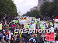 組圖:華盛頓舉行反戰大游行 2001年09月30日 15:39 ![]() 九月二十九日,美國首都華盛頓舉行大規模的反戰集會和游行,成千上萬反戰人士高呼“不要戰爭,不要種族主義”等口號,沿著賓西法尼亞大道浩浩蕩蕩向國會山方向進發。中新社記者 徐德金 攝 ![]() 九月二十九日,成千上萬美國反戰人士匯集華盛頓,舉行反戰游行。他們高舉“不要戰爭,不要種族主義”,“戰爭是恐怖”,“停止軍事暴力”等標語牌,高呼口號。中新社記者 徐德金 攝