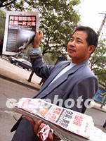 圖:“中國出線!美國開戰!”北京報紙好賣 2001年10月08日 10:56 ![]() “‘中國出線!美國開戰!’看報!”,北京報刊八日清晨刊登了中國足球出線世界杯勝況,和美國反擊塔利班的戰事,街頭報販為此大聲叫賣。中新社記者 鄒憲 攝 |