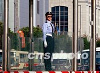 上海女警官在浦東世紀大道指揮交通,保證十月APEC會議順利召開。中新社記者 賈國榮 攝