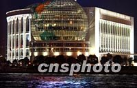 上海浦東黃浦江邊的國際會議中心入夜后一派輝煌,APEC高官會十月中旬在此舉行。中新社記者 賈國榮 攝