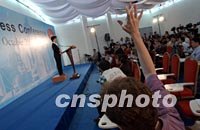 圖:中外記者聚焦上海APEC 2001年10月14日 15:19 ![]() 2001年上海APEC會議中國籌委會秘書處發言人章啟月,十四日在新聞中心就2001年APEC會議總體安排問題舉行新聞發布會,中外記者就大會議題、安全保衛等問題踴躍提問。中新社記者 王瑤 攝 |