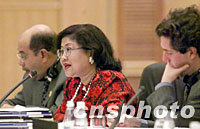 圖文:馬來西亞官員稱美國靠武力無法解決恐怖主義 2001年10月17日 18:44 ![]() 10月17日,2001年亞太經(jīng)合組織(APEC)部長級(jí)會(huì)議在上海國際會(huì)議中心開幕。這是馬來西亞貿(mào)工部長拉菲達(dá)·阿齊茲在會(huì)上發(fā)言。中新社圖