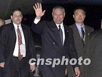 10月17日,美國國務卿科林·盧瑟·鮑威爾乘機抵達上海浦東國際機場。中新社圖