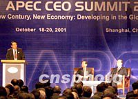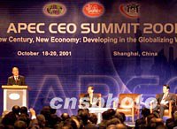 組圖:2001年APEC CEO峰會在上海開幕 2001年10月18日 15:05 ![]() 亞太經合組織工商領導人峰會(APEC CEO)十八日下午在上海開幕,中國國務院副總理錢其琛出席開幕式并致辭。中新社記者 毛建軍 攝 ![]() 亞太經合組織工商領導人峰會(APEC CEO)十八日下午在上海開幕,上海市長徐匡迪出席開幕式并致辭。中新社記者 毛建軍 攝