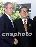 APEC快遞:江澤民主席與布什總統(tǒng)舉行會(huì)談 2001年10月19日 13:58 ![]() 10月19日,國(guó)家主席江澤民在上海西郊賓館會(huì)見(jiàn)美國(guó)總統(tǒng)布什。中新社圖 ![]() 10月19日,中國(guó)國(guó)家主席江澤民在上海與美國(guó)總統(tǒng)布什舉行會(huì)談。中新社圖