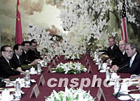中新社上海十月十九日電(記者譚宏偉)國(guó)家主席江澤民今天上午在上海與美國(guó)總統(tǒng)布什舉行了會(huì)談。這是兩國(guó)元首首次會(huì)晤。兩國(guó)元首就中美關(guān)系和反對(duì)恐怖主義維護(hù)世界和平與穩(wěn)定等重大問(wèn)題深入交換了意見(jiàn)。 會(huì)談是建設(shè)性的,富有成果的。 江澤民表示,中國(guó)高度重視與美國(guó)的關(guān)系,一向主張中美發(fā)展建設(shè)性合作關(guān)系。為此,雙方可以建立高層戰(zhàn)略對(duì)話機(jī)制,由我們兩人直接或派代表就共同關(guān)心的重大問(wèn)題交換意見(jiàn),及時(shí)溝通。 江澤民說(shuō),我們生活在一個(gè)豐富多彩的世界里。中美兩國(guó)會(huì)有不同的觀點(diǎn),但我們必須長(zhǎng)期共存。有不同意見(jiàn)應(yīng)求同存異,應(yīng)不斷擴(kuò)大我們的共同點(diǎn)。歷史證明,只要我們這么做,我們的關(guān)系就會(huì)得到發(fā)展。 江澤民說(shuō),改革開(kāi)放后,中國(guó)有了很大發(fā)展,上海就是中國(guó)發(fā)展的一個(gè)生動(dòng)的縮影,我們非常重視與美方的經(jīng)貿(mào)合作,不久前,我們購(gòu)買了三十架波音飛機(jī),這說(shuō)明中美經(jīng)貿(mào)合作是有廣闊前景的。 關(guān)于反恐怖主義問(wèn)題,江澤民說(shuō),中國(guó)一貫反對(duì)一切形式的恐怖主義,支持對(duì)恐怖主義進(jìn)行打擊。打得準(zhǔn)才能打得狠,應(yīng)避免傷及無(wú)辜。中美之間可以建立中長(zhǎng)期的反對(duì)恐怖主義合作機(jī)制。 布什表示,他一直期待著這次訪問(wèn)以便同江主席進(jìn)行面對(duì)面的會(huì)談。 布什強(qiáng)調(diào),美國(guó)政府高度重視與中國(guó)的關(guān)系。中國(guó)是一個(gè)偉大的國(guó)家,中國(guó)不是美國(guó)的敵人,他把中國(guó)看成是美國(guó)的朋友。美國(guó)致力于同中國(guó)發(fā)展建設(shè)性合作關(guān)系。毋庸諱言,美中之間會(huì)有分歧,但我們將本著相互尊重、坦率相待的精神來(lái)處理相互間的分歧。 布什表示,他一直強(qiáng)烈支持中國(guó)加入世貿(mào)組織,他對(duì)中國(guó)即將入世表示祝賀,認(rèn)為無(wú)論對(duì)中國(guó)還是對(duì)美國(guó),這都會(huì)帶來(lái)好處。他還祝賀中國(guó)申奧成功。 布什感謝中國(guó)在“九·一一”美國(guó)發(fā)生恐怖襲擊事件后迅速做出反映,明確、堅(jiān)定地支持美國(guó)人民反對(duì)恐怖主義,他還感謝中國(guó)在這方面給予的合作。 江澤民說(shuō),臺(tái)灣問(wèn)題始終是中美關(guān)系中最敏感的問(wèn)題,我們解決臺(tái)灣問(wèn)題的基本方針始終是“和平統(tǒng)一,一國(guó)兩制”,我們希望美方恪守一個(gè)中國(guó)政策,遵守中美三個(gè)聯(lián)合公報(bào)。 布什表示,他這次來(lái)到中國(guó)向中國(guó)重申美國(guó)政府奉行一個(gè)中國(guó)的政策,遵守中美三個(gè)聯(lián)合公報(bào)。 雙方還就共同關(guān)心的重大國(guó)際問(wèn)題交換了看法。 |