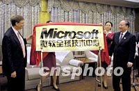 ![]() 十月十八日上海市市長徐匡迪與微軟公司主席比爾·蓋茨為新成立的微軟全球技術(shù)中心揭牌。同時,上海市政府與微軟公司還舉行“共同促進上海軟件產(chǎn)業(yè)發(fā)展諒解備忘錄”簽字儀式。中新社記者 潘索菲 攝