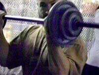 阿富汗首都喀布爾一名男子在美軍空襲的間隙,抽出時間健身。這個健身場所內,經常可以看到前來健身的阿富汗人。