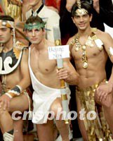 組圖:世界頂級男模角逐最佳民族服飾獎 2001年11月09日 10:51 ![]() 新西蘭男模Jason Hollery八日晚在北京東方花園展示民族服裝,角逐本屆男模大賽最佳民族服飾獎。世界唯一專業性的國際男模賽事夏蒙 2001 Manhunt世界男模大賽總決賽日前在北京舉行。中新社圖 武仲林 攝 ![]() 頭戴橄欖枝、手持奧林匹克火炬的希臘男模(中)八日晚在北京東方花園展示民族服裝,角逐本屆男模大賽最佳民族服飾獎。世界唯一專業性的國際男模賽事夏蒙 2001 Manhunt世界男模大賽總決賽日前在北京舉行,共有來自世界四十一個國家的男模參加這項賽事。中