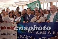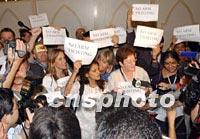 組圖:非政府組織成員示威 2001年11月12日 00:36 ![]() 正在多哈舉行的第四屆WTO部長會議會場外上,一些非政府組織成員十一日舉著標語示威呼喊“民主、公正”等口號。中新社記者 錢興強 攝 ![]() 十一日,在第四屆WTO部長會議大廳走廊上,五十多名非政府組織成員舉著“不要壓力”的標語進行示威。中新社記者 錢興強 攝