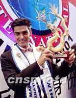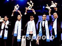 ![]() 夏蒙2001世界男模大賽十二日晚在北京保利劇院落下帷幕,包括冠亞軍在內的十七個獎項各有其主。圖為獲得本屆男模大賽前五名的選手。從左至右依次為委內瑞拉(季軍)、中國(亞軍)、印度(冠軍)、克羅地亞(第四名)和開曼群島(第五名)選手。中新社圖