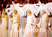 二十五日晚,百余名模特在九運會閉幕式大型文藝晚會上表演時裝《彩云追月》。中新社記者陳文攝
