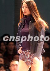 正在北京舉辦的2001中國國際時裝周上,三十日舉行題為“我的空間2002春夏張曉慧時裝發布會”。圖為模特女性展示休閑作品。中新社傳真 錢興強 攝