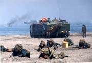 假想解放軍登陸 臺軍今早在澎湖實彈演習(圖) 2001年12月27日 15:58 臺軍進行沙灘演習(資料圖片) 中新網(wǎng)香港12月27日消息:臺北訊,臺灣軍方的澎湖“國防司令部”,今天清晨實施反登陸實彈演習,操演過程中試射各種火炮。 澎湖“國防司令部”今早集結(jié)部隊,在西嶼外海展開“聯(lián)信240號”演習。其間進行沙盤推演,圖上作業(yè)標定目標,隨即用軍方的105、155榴彈炮進行對海射擊。 之后,臺軍使用40防空炮對空射擊,進行擊機的操演。 臺灣軍方表示,操演是以實兵實彈射擊,已驗證臺軍的陸海空三軍聯(lián)合作戰(zhàn)能力。 有參加演習的軍官聲稱,此次軍事操演的目的是假想解放軍在臺登陸,臺軍則以榴炮和機槍炮“綿密的射擊”,“阻止”解放軍登陸。 臺軍方聲稱,演習中,整個反舟波火炮射擊都命中目標。 |
