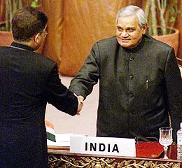 巴總統(tǒng)在南亞首腦會向印總理伸出友誼之手(圖) 2002年01月05日 15:45 ![]() 中新網(wǎng)北京1月5日消息:巴基斯坦總統(tǒng)穆沙拉夫在剛剛揭幕的南亞區(qū)域合作聯(lián)盟首腦會議上發(fā)表演說后,主動與印度總理瓦杰帕伊握手。 巴基斯坦總統(tǒng)穆沙拉夫發(fā)表演說指出,所有與會代表地位必須平等,各國要尋求長遠(yuǎn)的辦法,解決地區(qū)內(nèi)事務(wù)爭端.他還說,巴基斯坦是恐怖主義的受害者,并重申他已準(zhǔn)備好同印度展開對話。他在結(jié)束發(fā)言之前,主動提到與印度的緊張關(guān)系,并表明愿意隨時與印度展開和平對話以及愿意伸出真正友誼之手,然后他就步向瓦杰帕伊與他握手。 而印度總理瓦杰帕伊則感謝穆沙拉夫主動向他伸出友誼之手,并呼吁雙方停止無意義的暴力沖突。他稱印度一直積極尋求同巴基斯坦和談,但依然受到襲擊。他還說,印度在近二十年間不斷受國際恐怖主義侵襲,全球必須合作打擊恐怖主義。 印巴關(guān)系因為印度國會遇襲事件而惡化,雙方均在邊境部署軍隊并不時交火。印度總理瓦杰帕伊要求巴基斯坦采取強硬手段對付境內(nèi)極端份子,否則拒絕與穆沙拉夫直接對話。兩國領(lǐng)袖昨晚在尼泊爾皇宮參加晚宴期間沒有直接接觸。 |