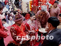 圖:佛山民俗文化節(jié)首次舉辦中式古典集體婚禮 2002年01月13日 09:58 ![]() 佛山民俗文化節(jié)首次舉辦中式古典集體婚禮,新人在萬福古戲臺(tái)上拜堂別有一番情趣。圖為伴娘捧著喜糖托盤,讓新人敬獻(xiàn)給雙親。中新社圖 辛述之 攝 |