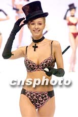 香港時裝節1月17日舉行女式內衣表演專場,模特展示一款香港設計師設計的具有歐式宗教色彩女內衣。中新社傳真 任晨鳴 攝