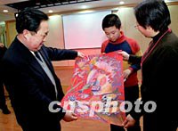 圖:17名中國學生即將赴美觀看冬奧會 2002年02月06日 09:52 ![]() 冬奧會開戰在即,即將赴美的12歲男孩王筱瑞向北京華文學院副院長贈送作品《年年有魚》。從“暢想奧運繪畫大賽”中脫穎而出的王筱瑞,即將和十六名中國學生一起赴美觀看冬奧會。中新社記者 鄭萍萍 攝