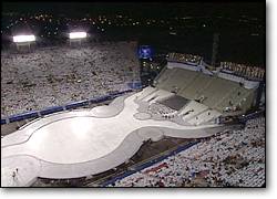 圖文:第十九屆冬奧會如期在美國鹽湖城開幕 2002年02月09日 10:29 ![]() 冬奧會開幕式俯瞰 中新網(wǎng)北京2月9日消息:盡管剛剛經(jīng)過一場大雪,氣候惡劣,但第19屆冬奧會還是如期于當?shù)貢r間周五晚間9時(北京時間今天上午10時)在美國猶他州鹽湖城如期舉行。 美國總統(tǒng)布什和國際奧委會主席羅格出席在鹽湖城萊斯-埃克爾斯奧林匹克運動場舉行的開幕式。布什莊嚴宣布說:“我宣布鹽湖城運動會召開。我宣布冬奧會開幕”。 剛剛在紐約世貿(mào)廢墟中挖掘出的殘損美國國旗在萊斯-埃克爾斯奧林匹克運動場冉冉升起。人們的歡聲笑聲連成一片。