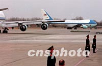 美國總統布什二十二日飛離北京,兩駕空中一號專機先后起飛。中新社記者 賈國榮 攝